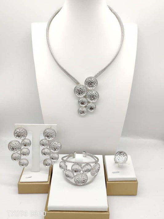 Bridal jewelry set 18K gold-plated necklace, earrings, bracelet, and ring set of four